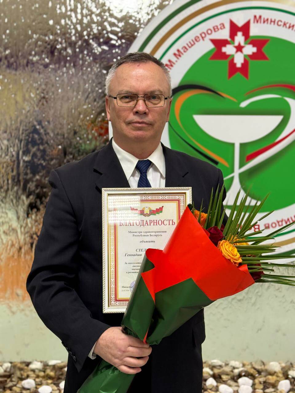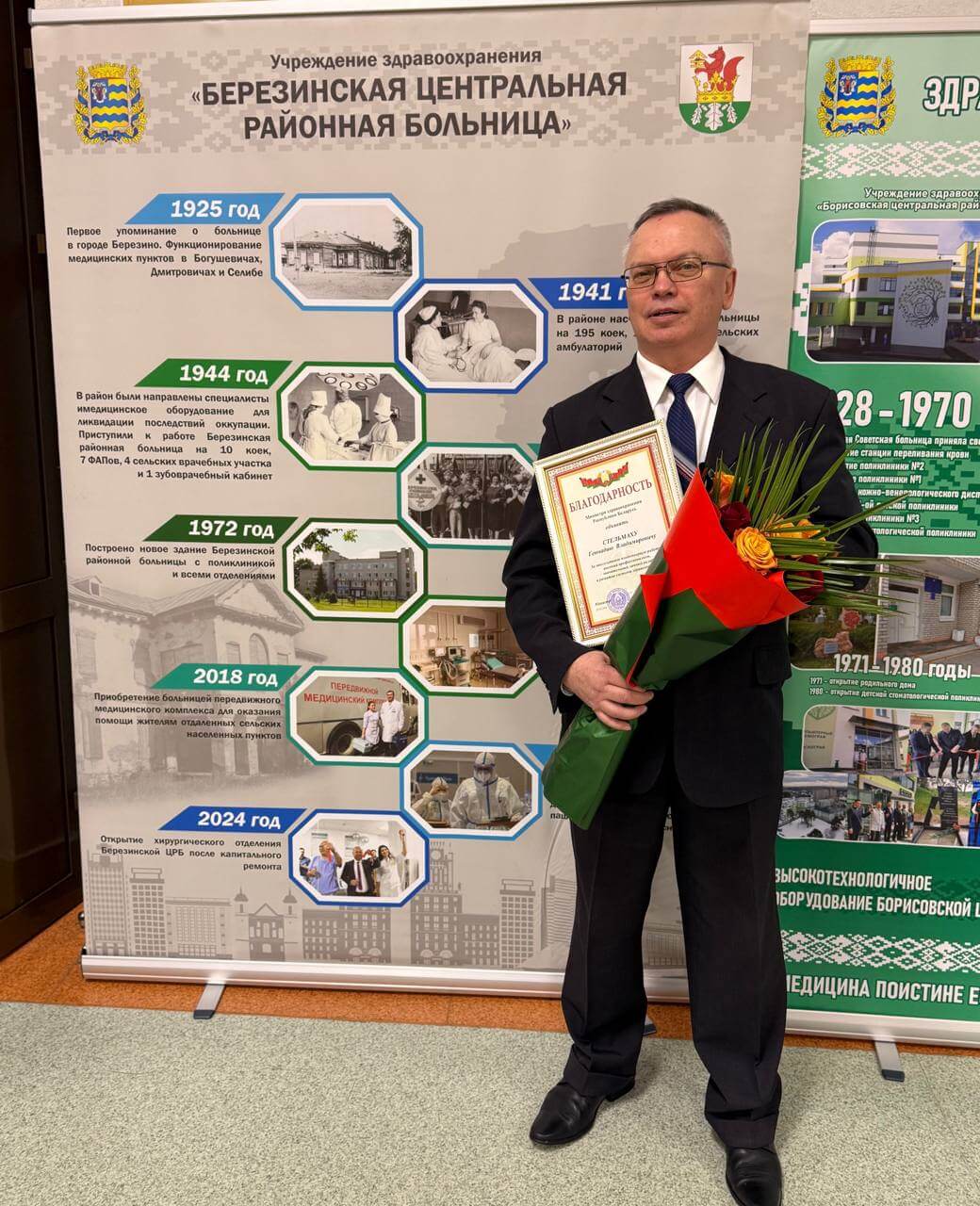 значительный вклад в развитие системы здравоохранения благодарностью Министра здравоохранения Республики Беларусь награжден врач-стоматолог (заведующий) стоматологическим отделением Березинской ЦРБ СТЕЛЬМАХ Геннадий Владимирович👏