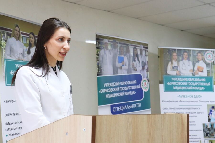 Ребят поприветствовала главный врач Березинской ЦРБ Кристина Крук, которая обратила внимание, что медицинский работник – это не только врач, но и фельдшер, и помощник врача, рассказала как можно получить целевое направление, и его преимуществах. Кристина Александровна обратила внимание, что медики всегда были востребованы в Березино, и что это востребованная и высокооплачиваемая профессия.
