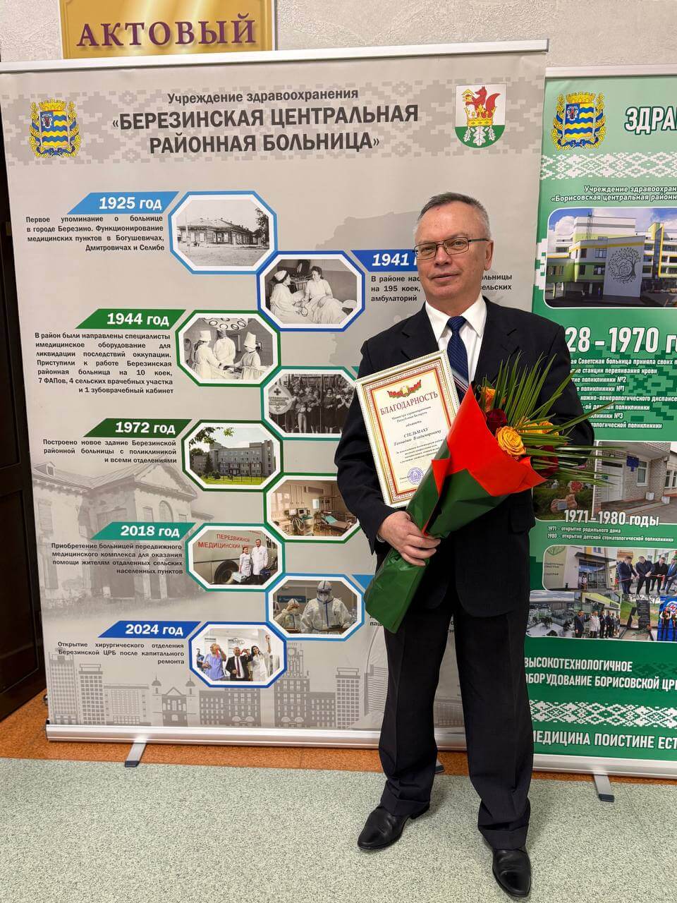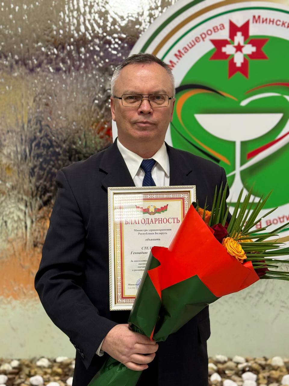 значительный вклад в развитие системы здравоохранения благодарностью Министра здравоохранения Республики Беларусь награжден врач-стоматолог (заведующий) стоматологическим отделением Березинской ЦРБ СТЕЛЬМАХ Геннадий Владимирович👏