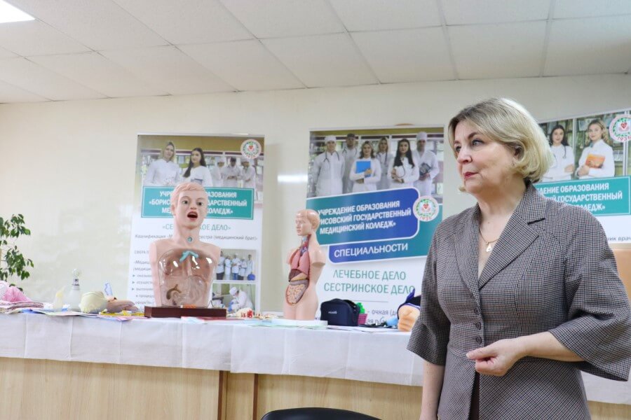 Ребят поприветствовала главный врач Березинской ЦРБ Кристина Крук, которая обратила внимание, что медицинский работник – это не только врач, но и фельдшер, и помощник врача, рассказала как можно получить целевое направление, и его преимуществах. Кристина Александровна обратила внимание, что медики всегда были востребованы в Березино, и что это востребованная и высокооплачиваемая профессия.