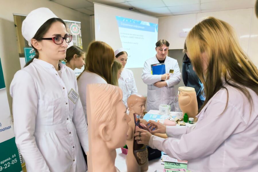 Студенты колледжа продемонстрировали мастер-классы по отработке внутримышечной инъекции, уходу за новорождённым ребёнком, технике измерения артериального давления. Принимали участие в мастер-классах и будущие абитуриенты.