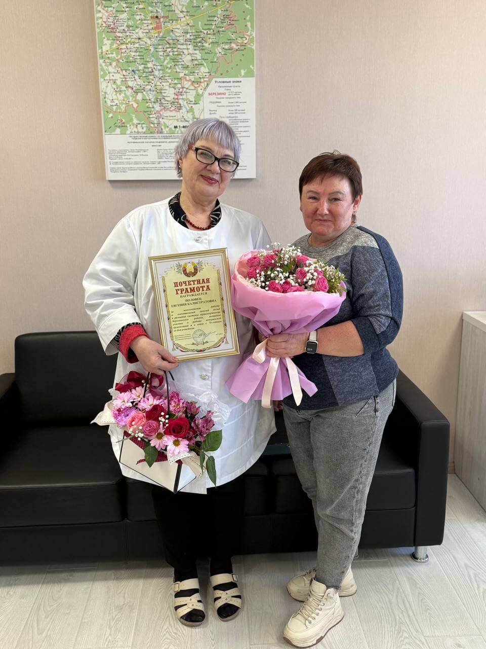 добросовестный многолетний труд в системе здравоохранения и в преддверии праздника Дня Независимости Республики Беларусь благодарностью президиума Минского областного комитета Белорусского профсоюза работников здравоохранения награждены